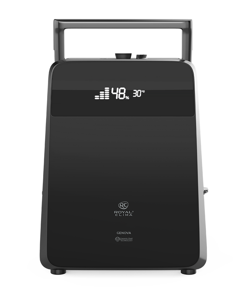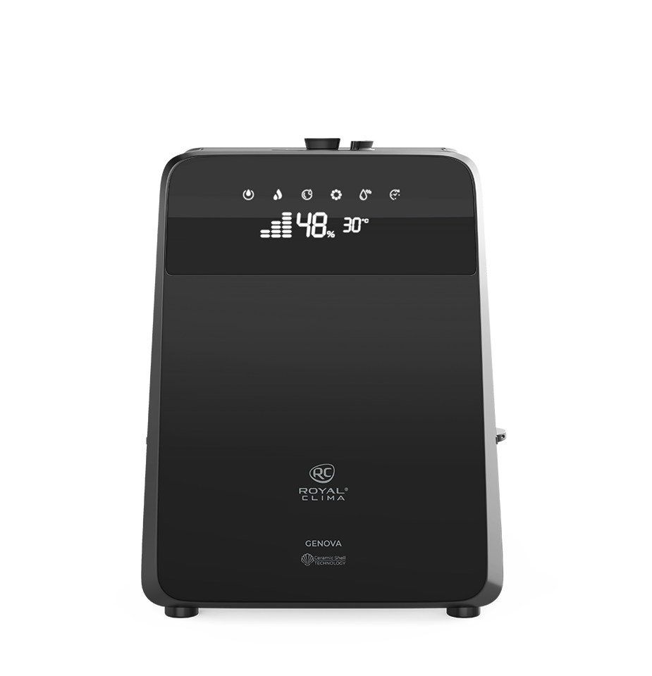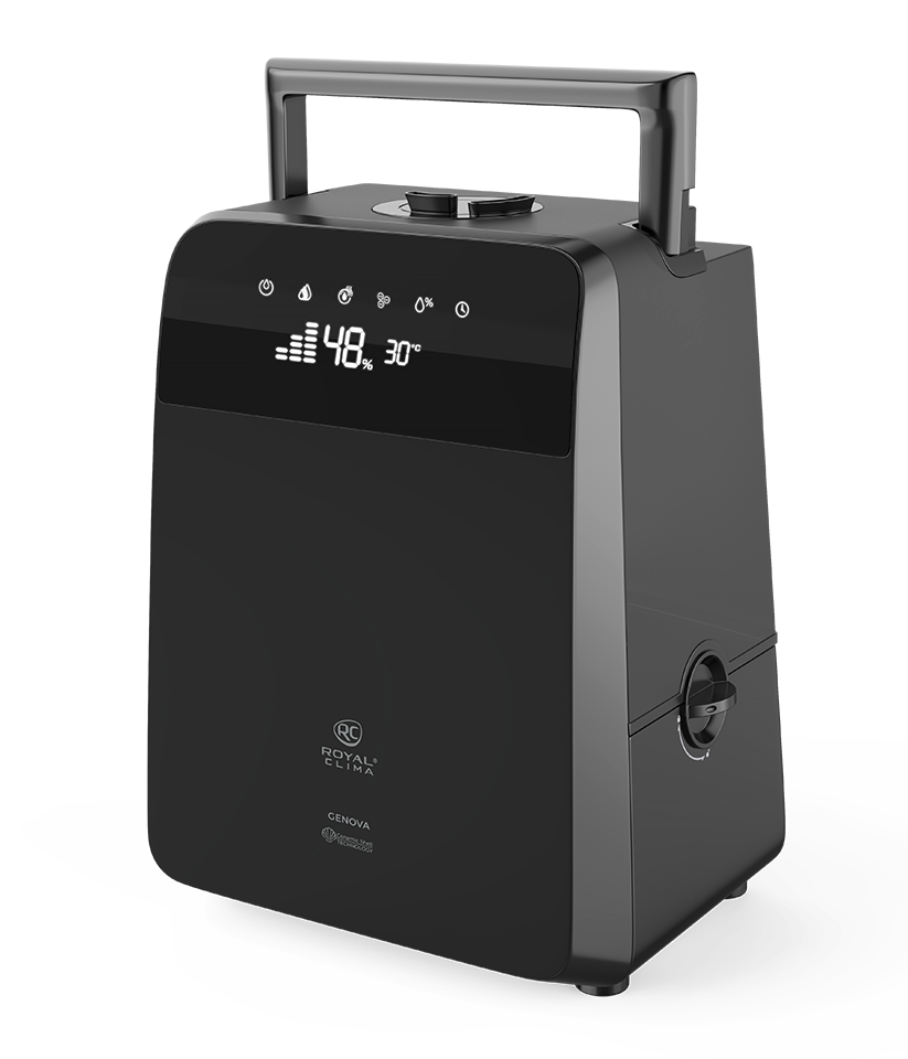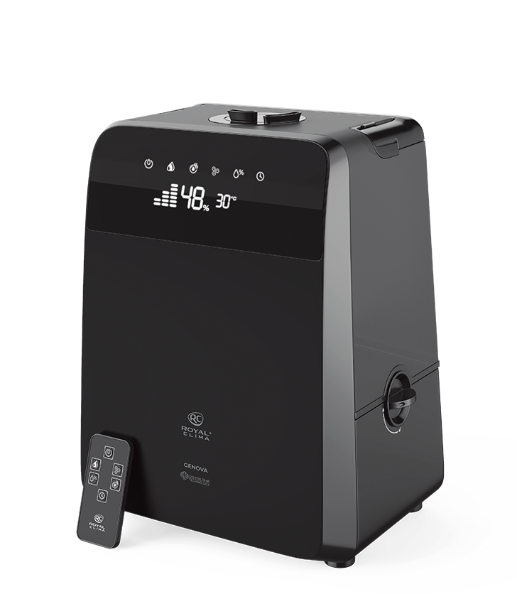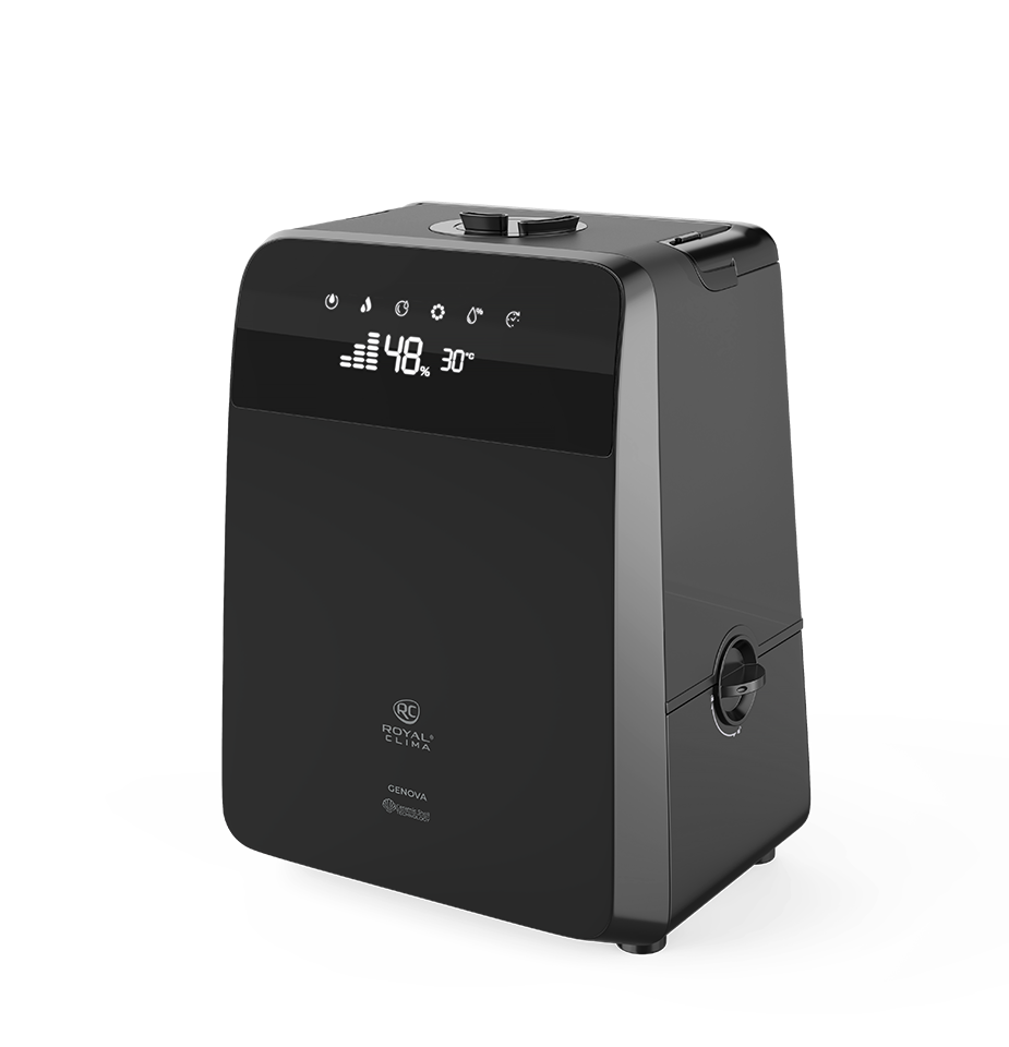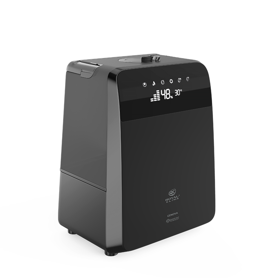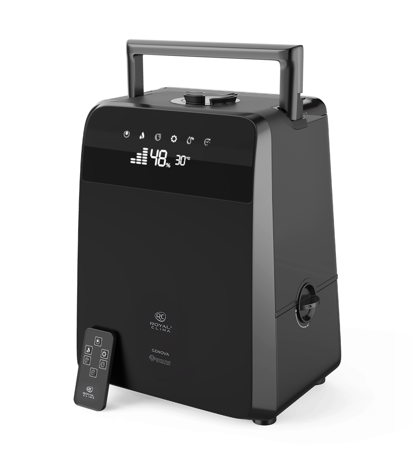 Новая серия бытовых увлажнителей GENOVA (Ге́нуя) от ROYAL CLIMA идеально справится с задачей поддержания правильного микроклимата и необходимого уровня влажности: прибор сам определит текущий уровень влажности и доведёт его до нужного значения исходя из текущей температуры в помещении. Новую серию увлажнителей отличает стильный дизайн и строгие формы. Матовое покрытие «чёрный вельвет» придает внешнему виду прибора особый шарм. GENOVA функционален и удобен в управлении: для более эффективного увлажнения помещения – функция «тёплый пар», ионизатор сделает воздух полезным и оздоравливающим, функция ароматизации и многие другие позволят помочь создать идеальные условия в помещении. Специальный замок не позволит детям снять резервуар для воды и получить доступ к внутренним компонентам прибора. Управлять прибором можно как с помощью сенсорной панели, так пультом ДУ.