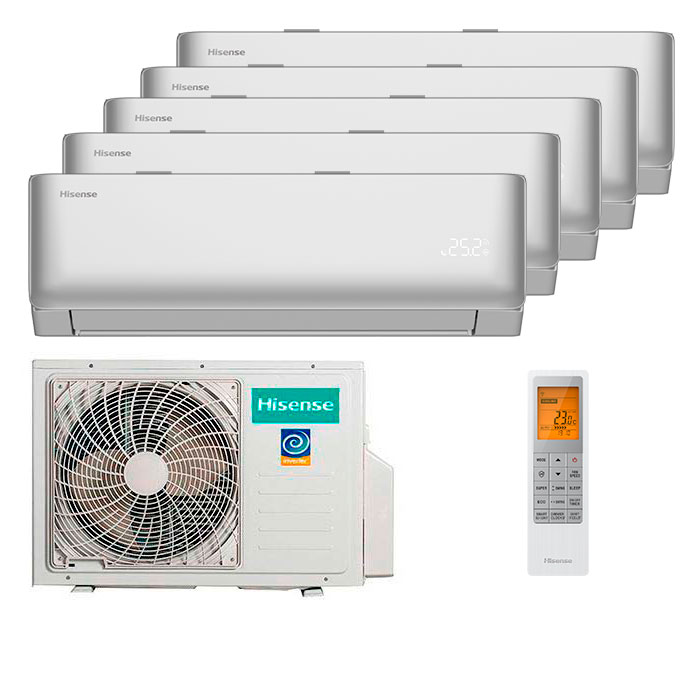 Современная климатическая техника не перестает удивлять и теперь вместо двух кондиционеров, вы можете установить одну мульти сплит систему, в которой будет присутствовать только 1 наружный блок и 2 или более внутренних. Так, например, комплект мультисплит система Hisense AMS-09UW4RYCHD00(S) x 5 / AMW5-42U4RTA объединил в себе 5 внутренних блока и 1 наружный блок, для комнат до 20 (25) кв.м.
